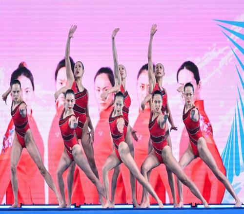 第十五届全国运动会花样游泳赛事正在江门体育中心游泳馆火热进行。在11月13日率先上演的集体技术自选与集体自由自选两项比拼中,北京体育大学队以总分637.5596暂列集体项目第一。11月14日19:00,集体项目中最后一项赛事——集体技巧自选将在江门体育中心游泳馆上演,届时将产生本届全运会花样游泳集体项目金牌。