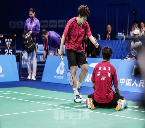 今天下午2点,首先进行的女双决赛由四川的郑雨/张殊贤对阵福建的谭宁/黄东萍,双方首局就打到加分,单局耗时就超过40分钟。最后,黄东萍/谭宁以25比23、21比16战胜郑雨/张殊贤,首夺全运会女双金牌。