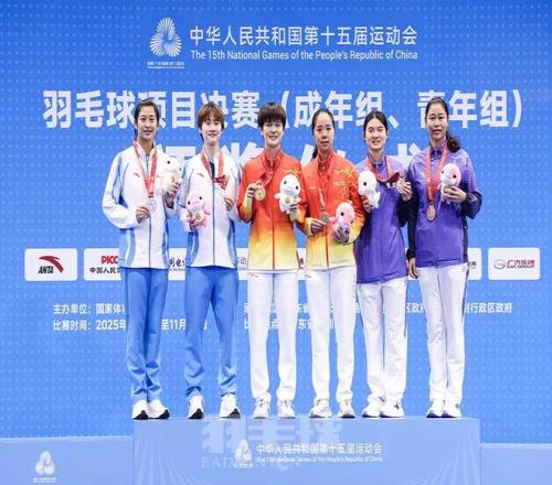 至此,本届全运会羽毛球比赛全部结束。有三支队伍夺得两金,福建队在单项赛中取得男单和女双两金,浙江队斩获混双和成年组女团两枚金牌,江苏队夺得成年组男团和青年组女团两枚金牌;湖北、安徽、山东分别获得女单、男双、青年组男团金牌。
