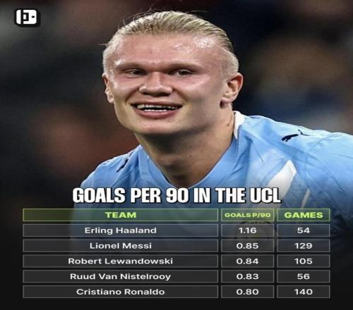 最近一家足球数据媒体发布了欧冠场均进球榜,哈兰德、梅西、莱万、多位顶级前锋悉数上榜。榜单显示哈兰德以1.16球/90分钟高居第一,把几位前辈都压在身后。这样的欧冠效率,未来会把他送到怎样的高度?