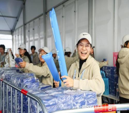 在今年的终点休息区,沪语电影《菜肉馄饨》搭建的展台带来了一批主创人员,也吸引了众多外国跑者驻足。演员周野芒一遍遍耐心教授外国跑者上海话,以本土语言文化传递真挚的加油情感,展现上海独特的城市魅力,同时也助力沪语文化的传承与推广。