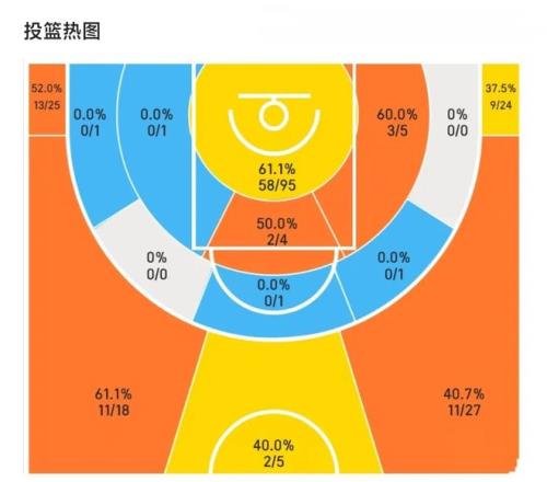从投篮出手分布来看,中距离投篮基本一片空白,完全分布在三分线和禁区两个方向。虽然夏联已经证明了泰森的单兵突破力,但显然他没有过度依赖这种突破流打法。