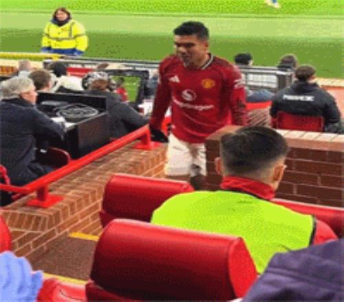 由于积累5张黄牌,卡塞米罗将无缘曼联的下一场比赛,他可能觉得自己没需要休息。因此,走下球场时,卡塞米罗垂头丧气,他摇着头,站在替补席上,把一瓶水摔在了地上。在朝右侧的人大声呼喊后,他拿起一件曼联外套穿上,但并没有注意衣服上下颠倒了。