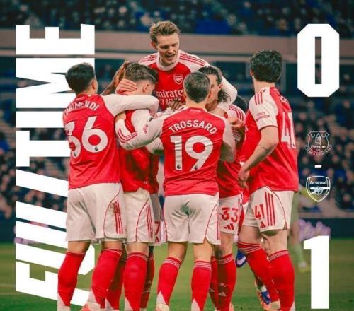 阿森纳客场1球小胜埃弗顿,以2分优势拿下英超圣诞冠军!北京时间12月21日凌晨,英超第17轮继续展开较量,阿森纳客场挑战埃弗顿,比赛第27分钟,埃弗顿后卫奥布莱恩禁区内犯规送点,阿森纳前锋哲凯赖什冷静主罚命中,打入全场唯一进球。最终,枪手以一场经济实惠的1比0小胜,再度重返英超榜首。
